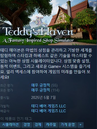 테디 헤이븐 - 판타지에서 영감을 받은 상점 시뮬레이터