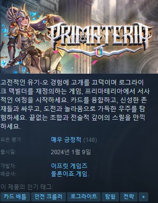 "프리머테리아 Primateria" 한글패치가 제작 되었습니다.
