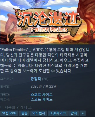 폴른 렐릭스 Fallen Relics 한글패치가 제작 되었습니다.